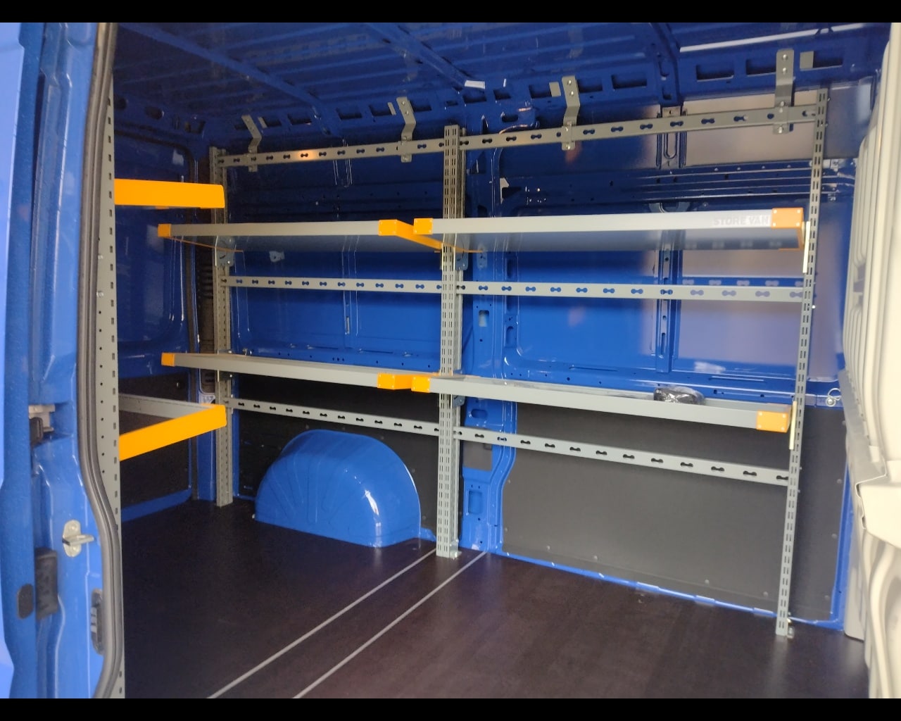 Allestimento interno con scaffali e ripiani
